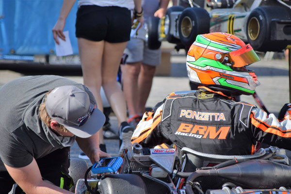 Beim Kräftemessen der KZ2 ging der Italiener Timo Ponzetta ins Renngeschehen, er beeindruckte bereits im Qualifying und platzierte sein BRM-Kart prompt auf der 5ten Position. Namhafte Fahrer